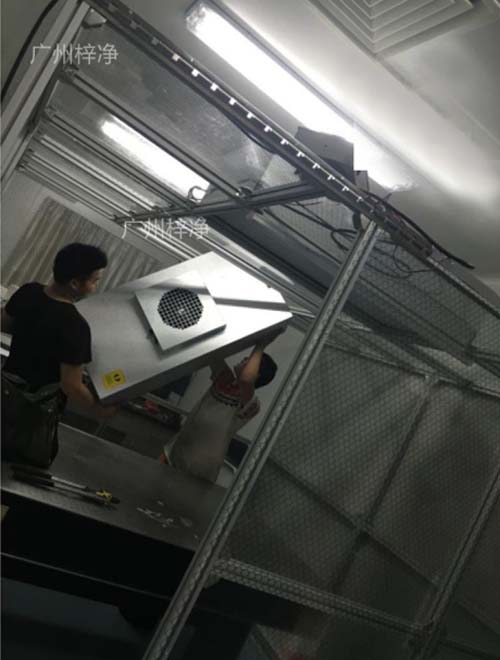 4、凈化工作站相對(duì)超凈工作臺(tái),內(nèi)部可用有效空間大;相對(duì)傳統(tǒng)無(wú)塵室,成本低、施工快、且對(duì)樓層高度低不限。技術(shù)人員正在放置千級(jí)潔凈棚FFU千級(jí)潔凈棚|1000級(jí)潔凈棚材料: