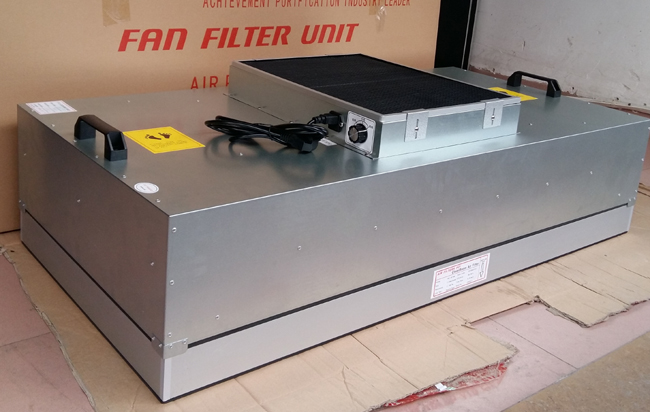 FFU工作通電后,風(fēng)機(jī)運(yùn)轉(zhuǎn),離心風(fēng)機(jī)將空氣吸入,空氣到達(dá)FFU靜壓箱內(nèi),利用風(fēng)機(jī)壓力的作用空氣到達(dá)高效率過濾,通過高效率過濾后的空氣達(dá)到100級(jí)(美國聯(lián)邦209E標(biāo)準(zhǔn))然后均勻地送出。