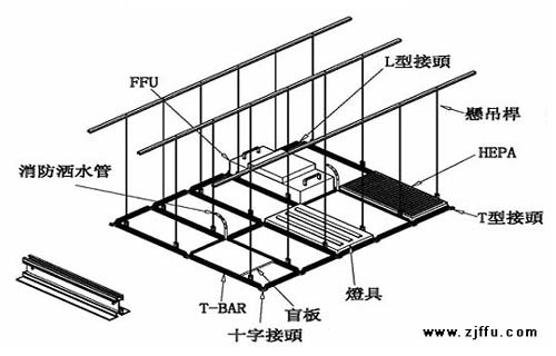 FFU風(fēng)機(jī)吊頂龍骨系統(tǒng)是指用鋁合金做成的,用于潔凈室天花吊頂?shù)闹鞑牧?,它通過螺桿與鋁合金相接,用來固定FFU。適用于局部層流系統(tǒng)、FFU系統(tǒng)和不同潔凈級(jí)別的空氣凈化系統(tǒng)。