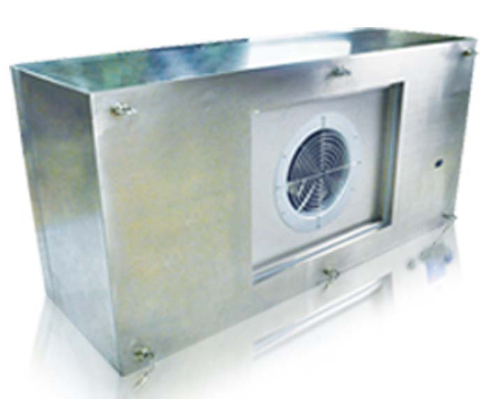 FFU層流罩設(shè)有初、高效兩級(jí)過濾裝置。風(fēng)機(jī)從頂部將空氣吸入并經(jīng)初效過濾器、高效過濾器進(jìn)行過濾,過濾后的潔凈空氣在整個(gè)出風(fēng)口送出。安裝方式有懸掛式和落地支架兩種。