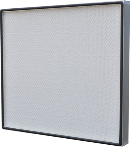 無隔板高效過濾器主要用于捕集0.3um以上的顆?;覊m及各種懸浮物,作為各種過濾系統(tǒng)的末端過濾。采用超細玻璃纖維紙作濾料,膠板紙、鋁箔板等材料折疊作分割板,新型聚氨酯密封膠密封,并以鍍鋅板、不銹鋼板、鋁合金型材為外框制成。