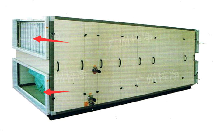 (1)水平層流式:水平式空氣自過濾器單方向吹出,由對邊墻壁的回風系統(tǒng)回風,塵埃隨風向排出GMP凈化車間外,一般在下流側(cè)污染較嚴重。