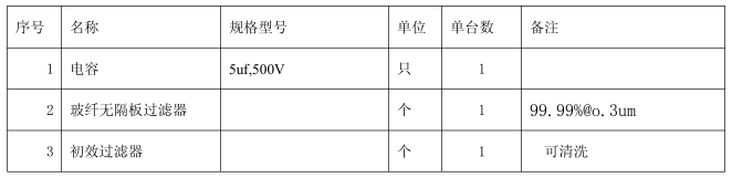 (1)定期維護(hù)項(xiàng)目請(qǐng)依表 3.所示,對(duì)風(fēng)機(jī)過(guò)濾器單元實(shí)施定期點(diǎn)檢,當(dāng)部件壽命已至?xí)r,請(qǐng)立即進(jìn)行部件更換。(部件壽命指一般使用狀況下之壽命,會(huì)因使用環(huán)境及使用狀況而有所差異)。