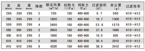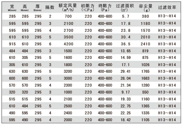 用戶選購指南-DOP一體化高效過濾器標準技術(shù)參數(shù)
