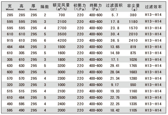 用戶選購指南-260度耐高溫高效過濾器技術(shù)參數(shù)